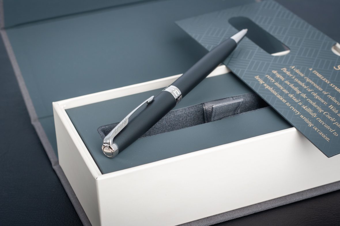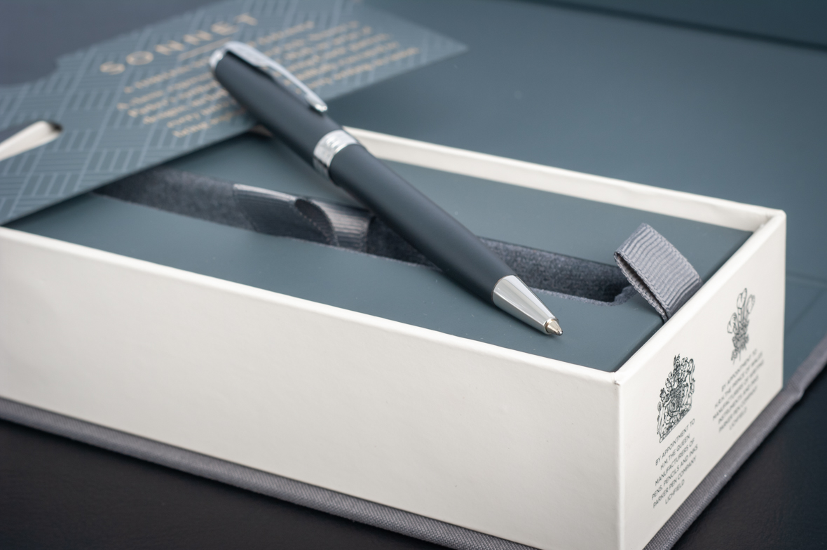Шариковая ручка Parker Sonnet Matte Black CT от официального дилера Parker в Арзамасе. Вы можете дополнительно заказать гравировку, которая подчеркнет Вашу оригинальность и придаст памятность статусному подарку. Все ручки Паркер поставляются в фирменном футляре.